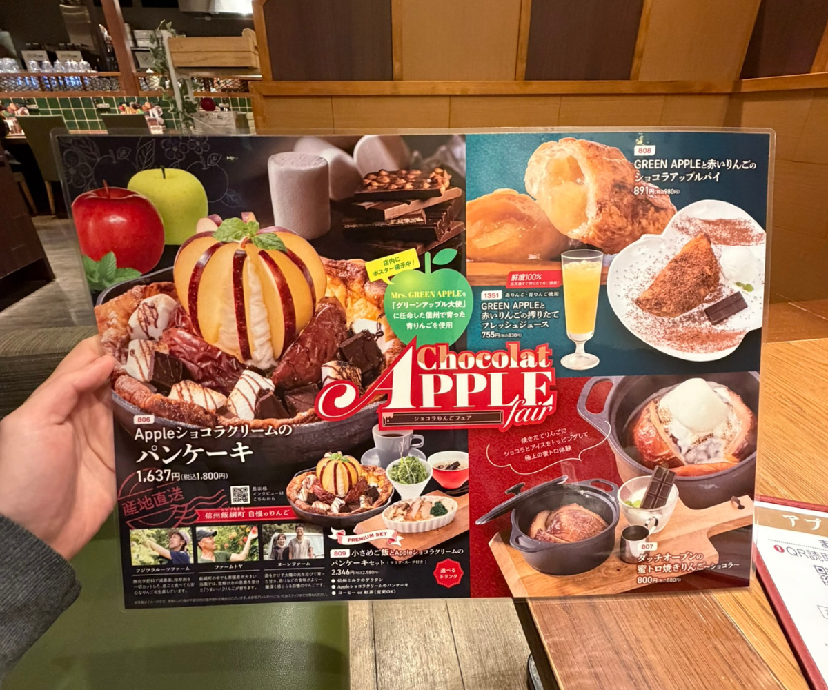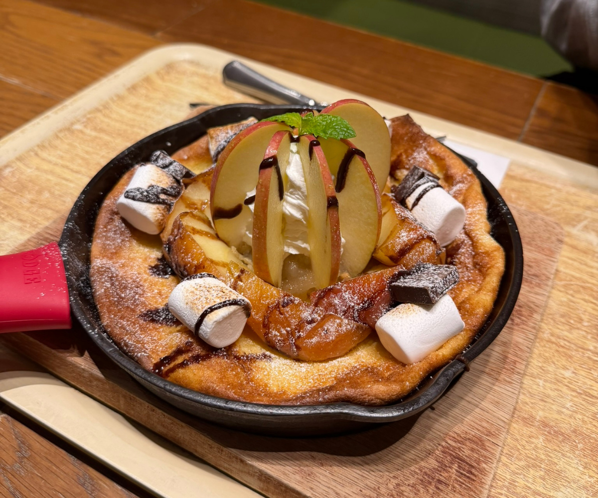 デザートは、フェア開催中のAppleショコラクリームのパンケーキを頂きました(かなりのボリュームでお腹いっぱいでした。味も量も大満足です!!)