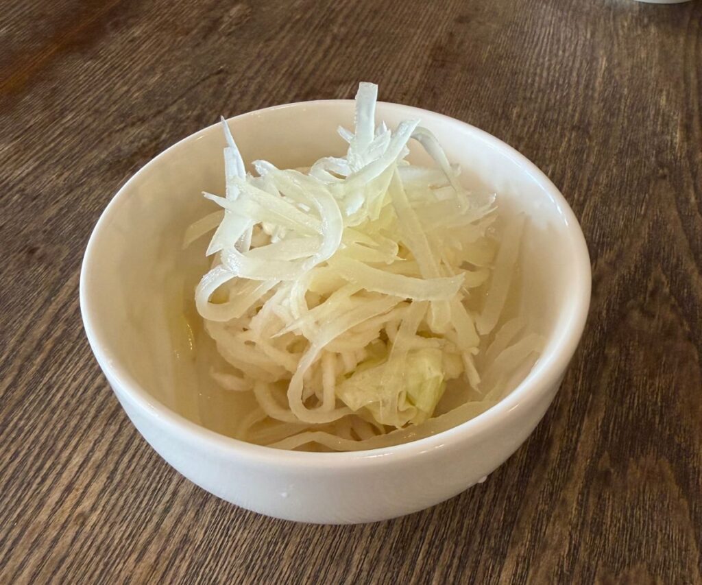 注文したメニューは、「カツカレー(ロース)」にしました。辛さは普通にしました。(普通でも個人的には辛かったです)ランチにはスープとピクルスが付いてきます!