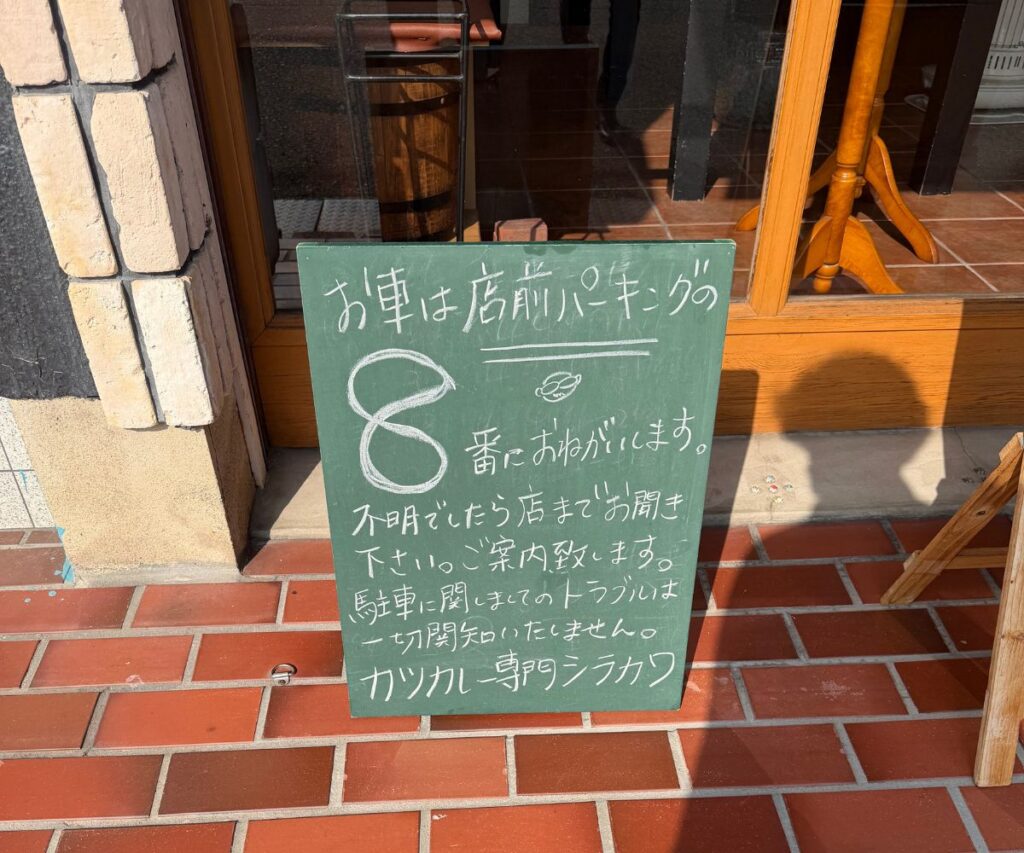 店舗前に1台分の駐車場が用意されているほか、近隣にもコインパーキングがあり、車で訪れやすい立地なのもポイント。ランチ時間帯はカレーが売り切れ次第閉店となっているため、早めの来店がおすすめです。