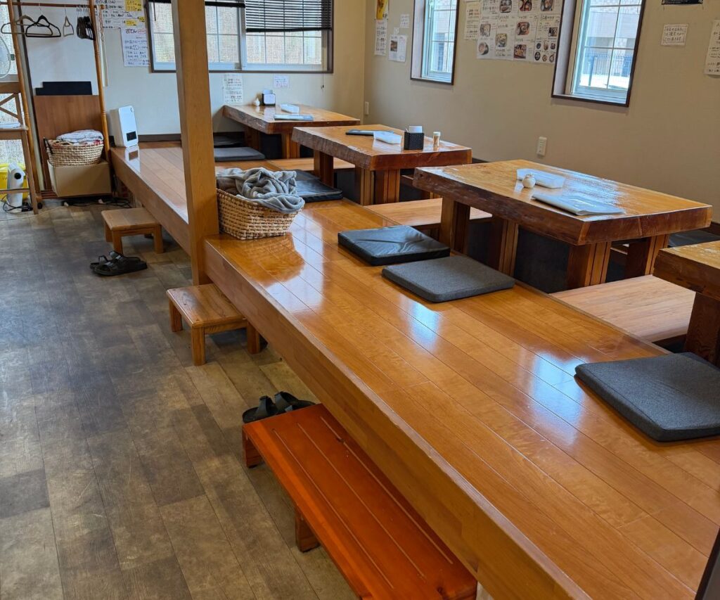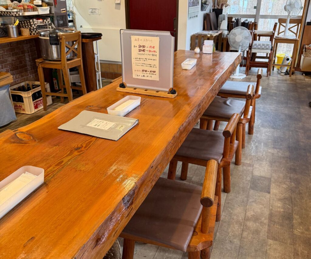 まるで友達の家に招かれたような温かみのある空間が広がり、初めて訪れても落ち着いて過ごせる雰囲気が魅力です。テーブル席を中心に、少人数でも家族連れでも使いやすいレイアウトになっており、ゆったりと食事を楽しめるのが嬉しいポイント。席間にもゆとりがあり、周囲を気にせず会話を楽しめます。