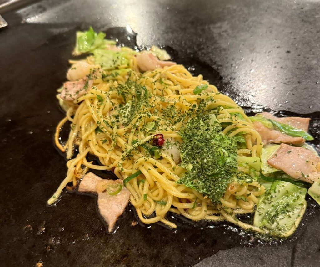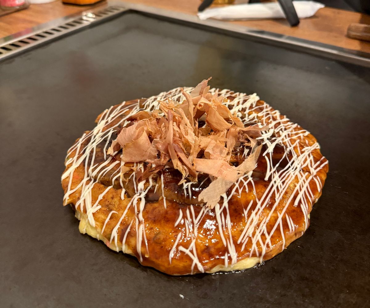 お好み焼きはソースの味が濃すぎず、生地の甘みを引き立ててくれて鉄板で焼き上げる香ばしさがしっかり感じられて、最後まで美味しく食べられました。