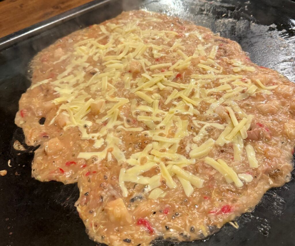 焼き上げることで塩辛の風味がまろやかになり、香ばしさと旨みが一体となった“大人向け”のもんじゃで裏の人気メニューとのことです。