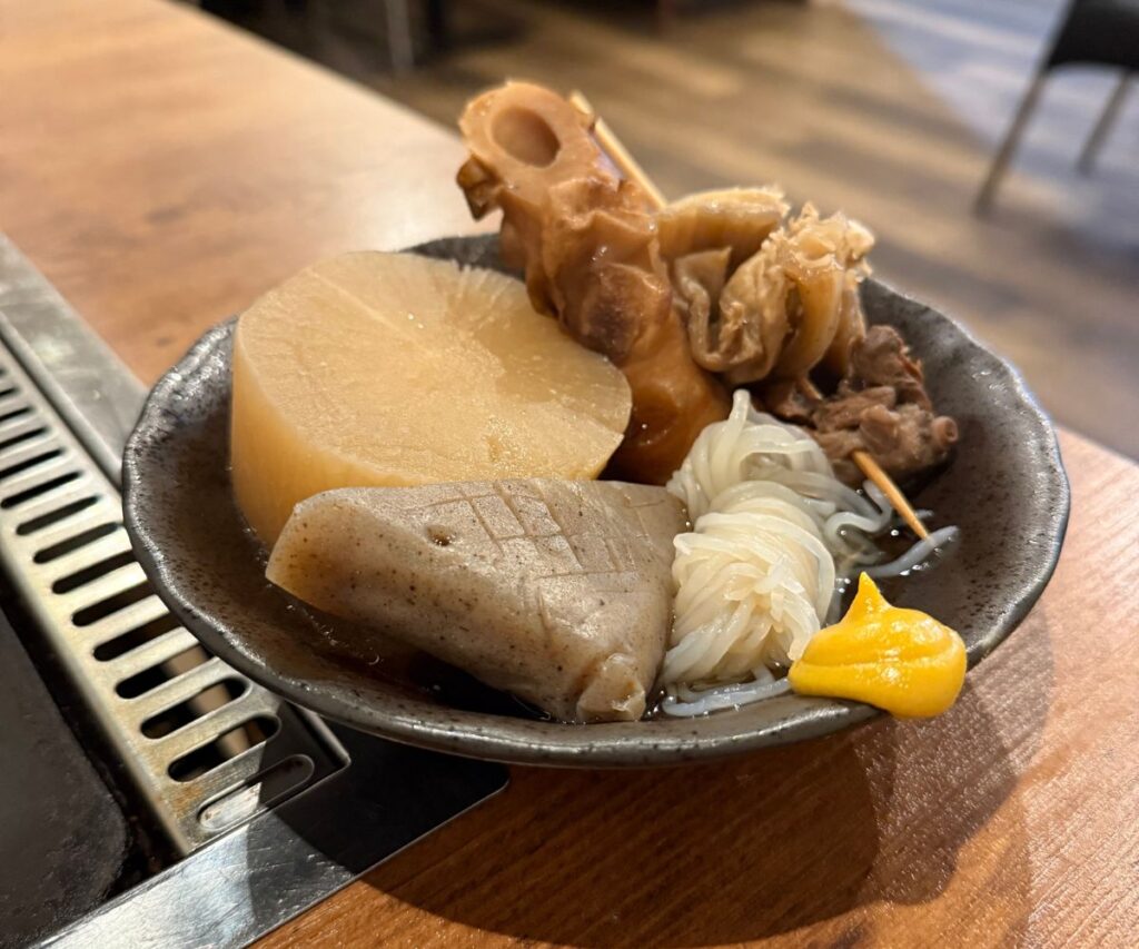 おでんは冬限定で出汁が染み込んでて美味しく土手焼は味が絶妙な濃さでお酒と一緒に食べたくなる一品です。