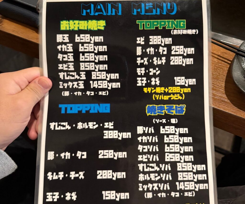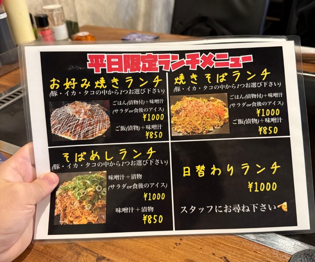 店内に入ると、鉄板の音とソースの香りが広がり、自然と食欲がかき立てられます。