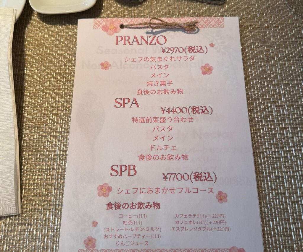 注文したのは2970円のコース
