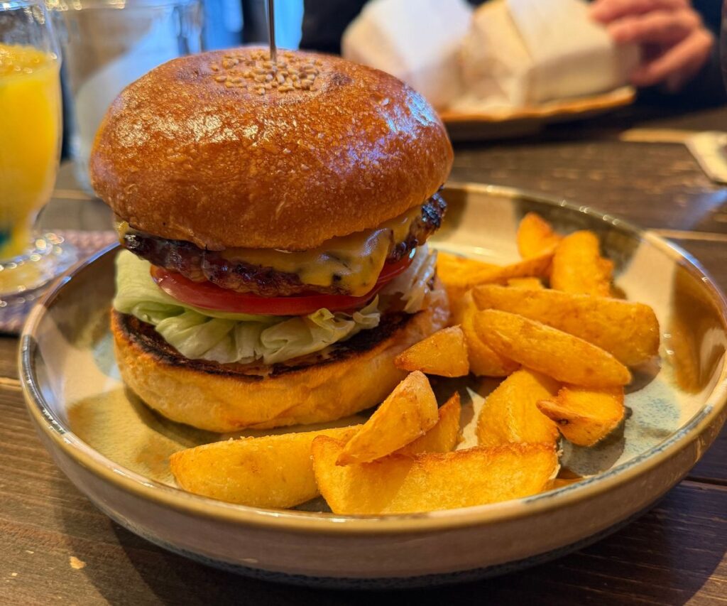ハンバーガー類はポテトorサラダが付いてきます。ボリューム大のハンバーガーで満足感のある一品でした。他にも種類があるので色々食べてみたくなりました。